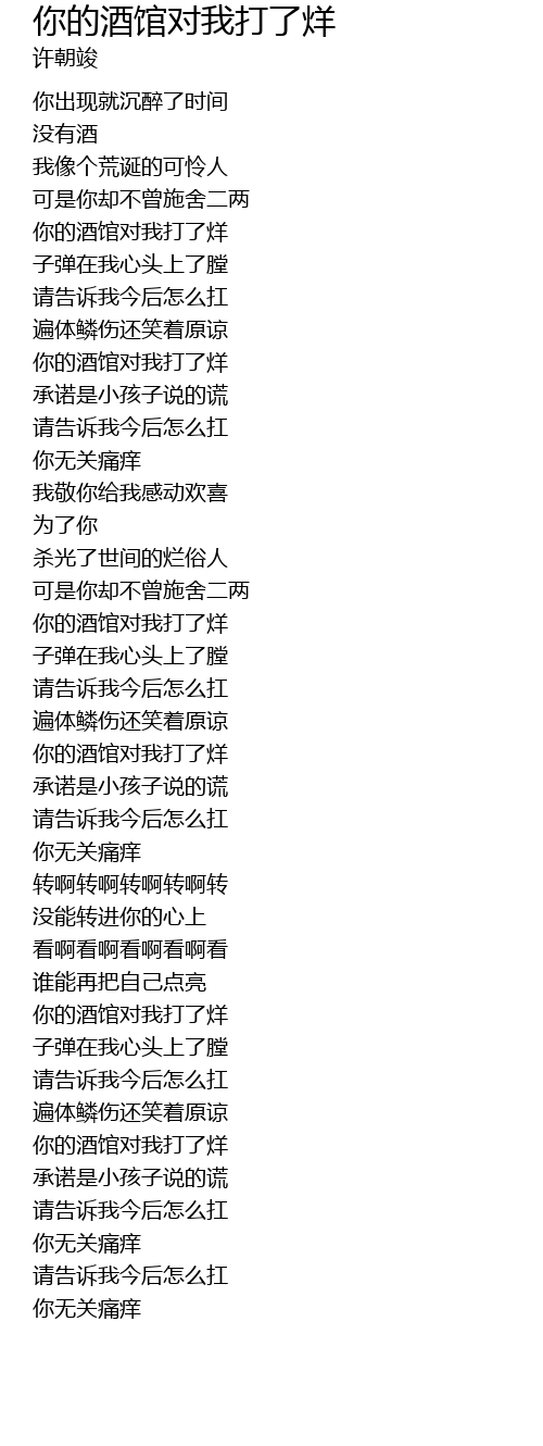 | nǐ de jiǔ guǎn duì wǒ dǎ le yáng | |