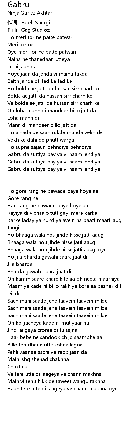 | zuò cí : Fateh Shergill | |