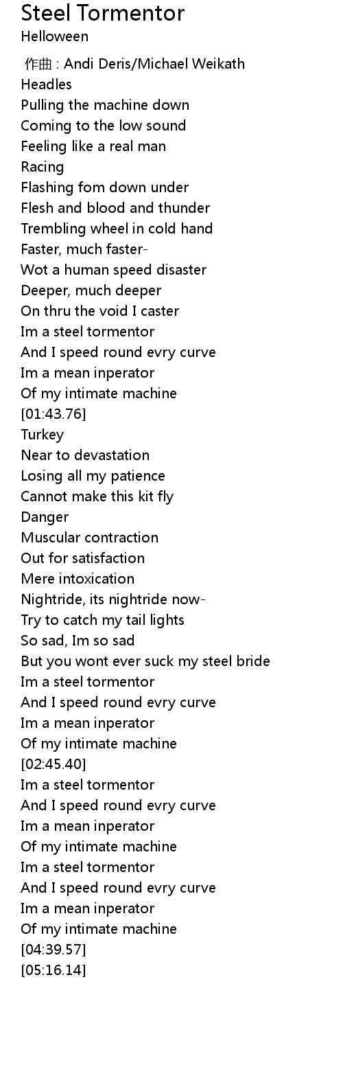 | [00:00.00] | zuò qǔ : Andi Deris Michael Weikath |