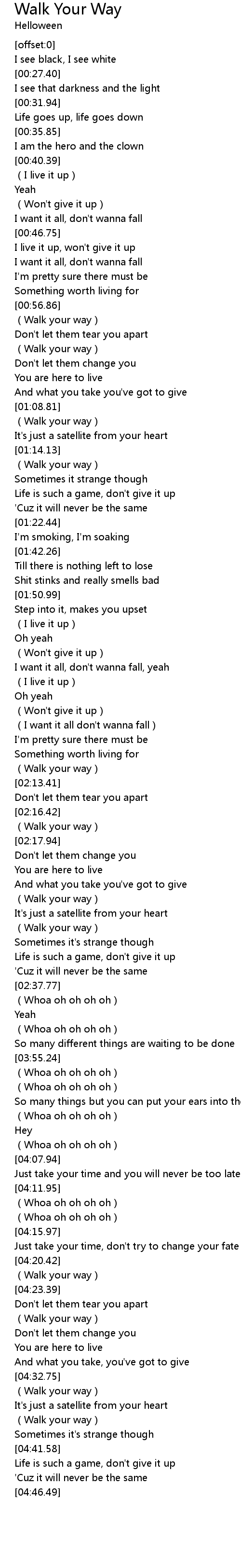 | [04:25.87] | (Walk your way) |