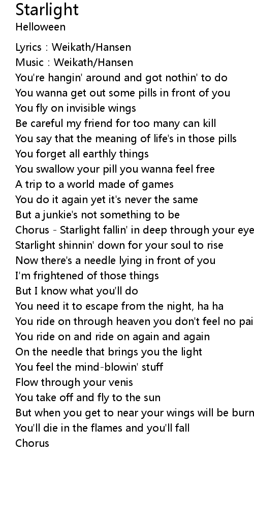 | Chorus - Starlight fallin' in deep through your eyes | |