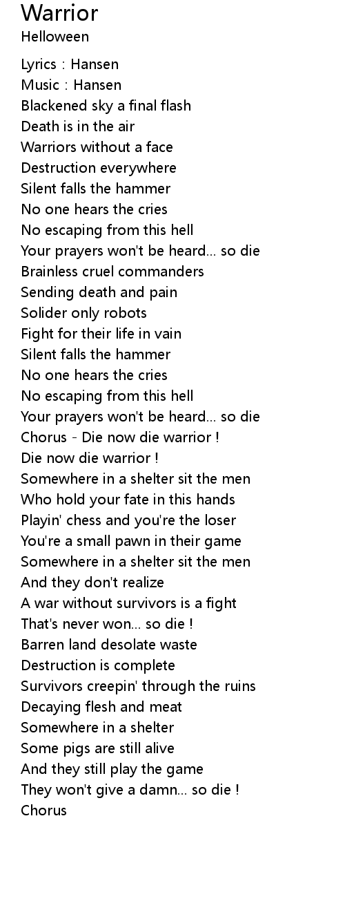 | Chorus Die now die warrior ! | |