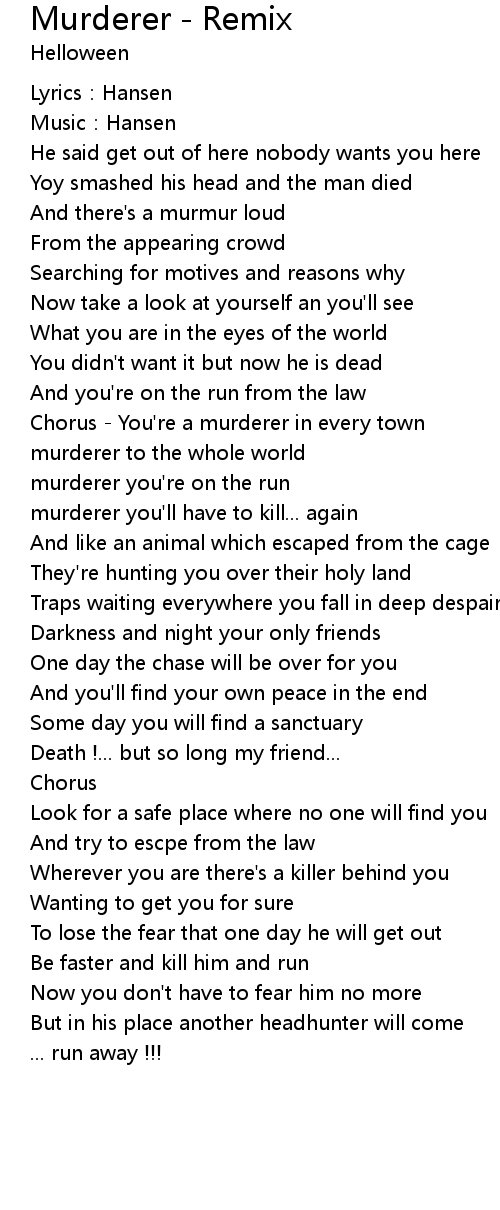 | Chorus You' re a murderer in every town | |