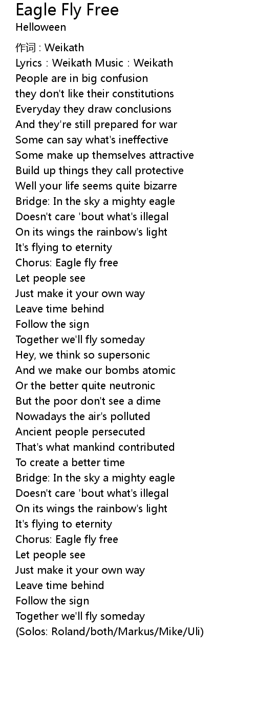 | Chorus: Eagle fly free | |