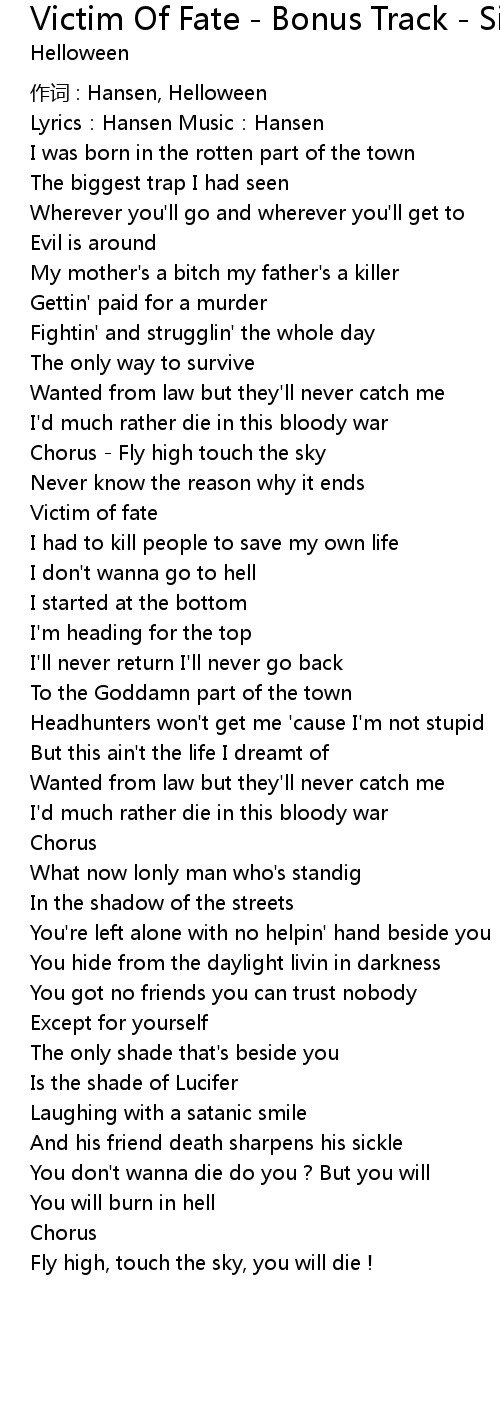 | Song | Victim Of Fate - Bonus Track - Single B-Side |