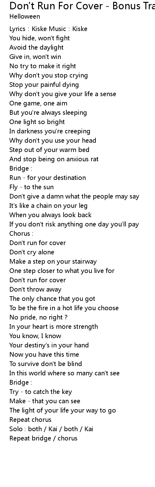| Don' t run for cover | |