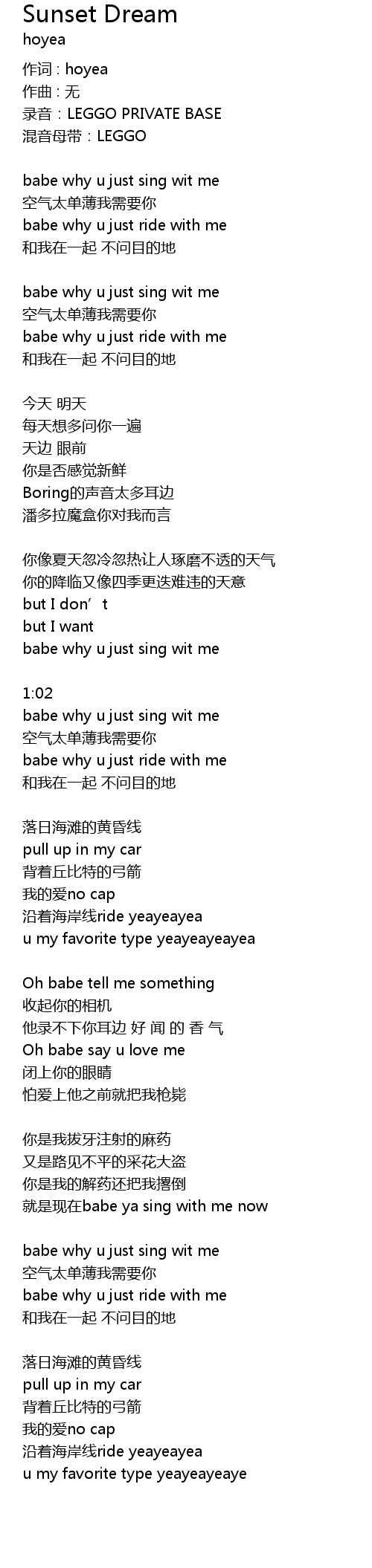 | 作词 : hoyea | |