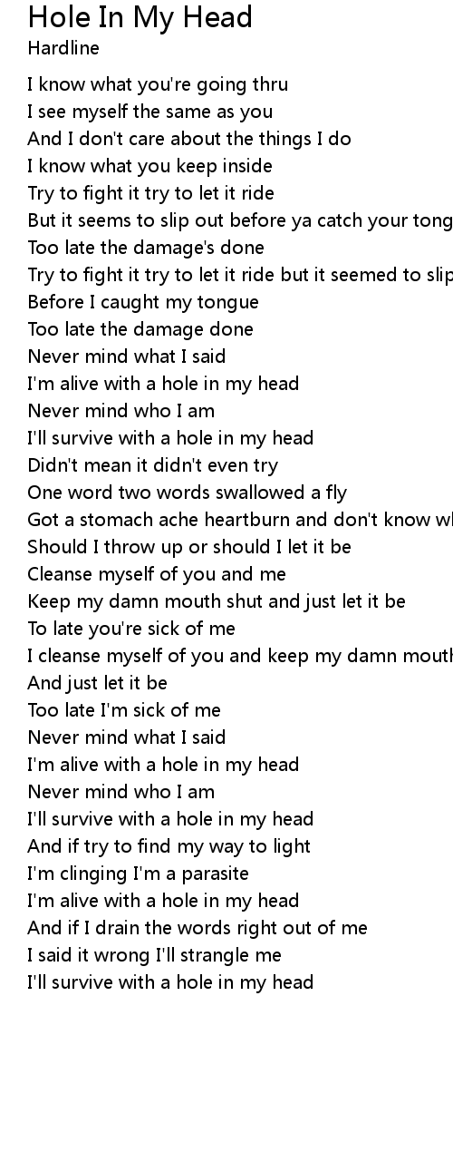 I'm alive with a hole in my head |