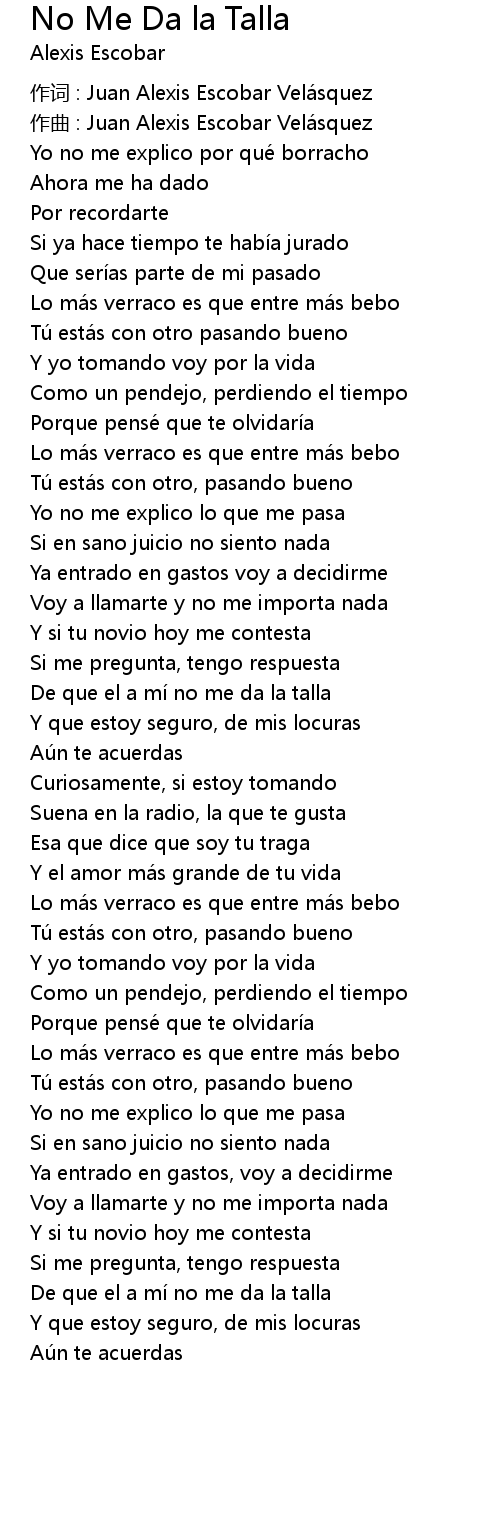 | 作词 : Juan Alexis Escobar Velásquez | |