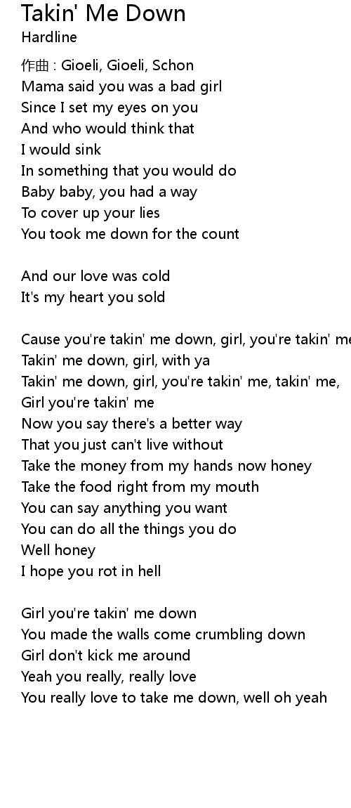 | Cause you' re takin' me down, girl, you' re takin' me, takin' me | |