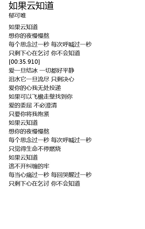 | [02:11.330] | 只剩下心在乞讨 你不会知道 |