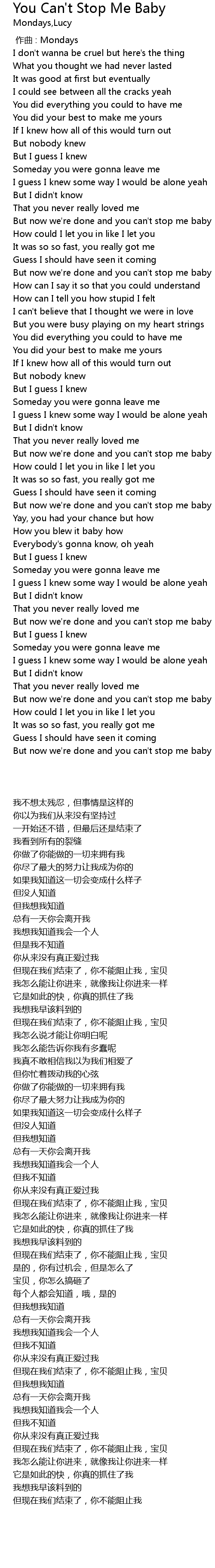 | [00:55.63] | But now we're done and you can't stop me baby |