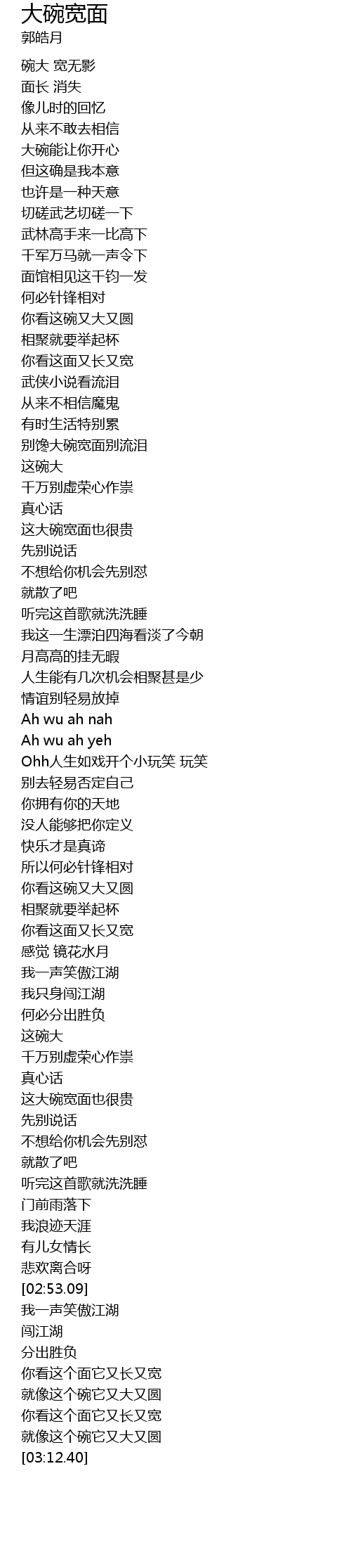 | [00:54.42] | 别馋大碗宽面别流泪 |