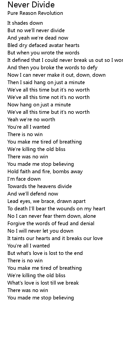 But no we'll never divide |