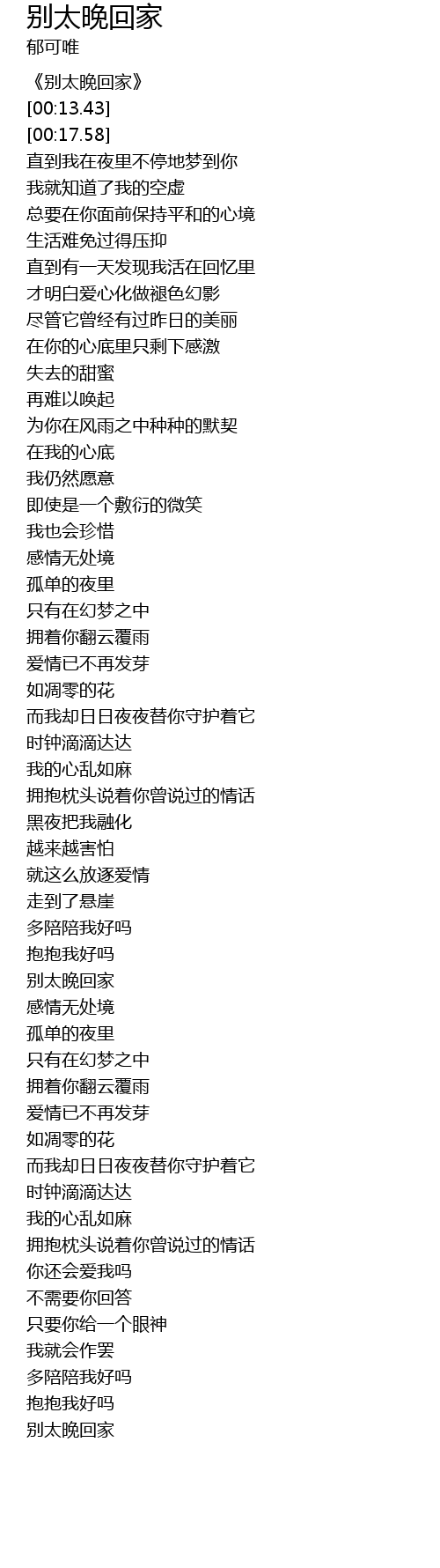 | [00:37.83] | zhí dào wǒ zài yè lǐ bù tíng dì mèng dào nǐ |