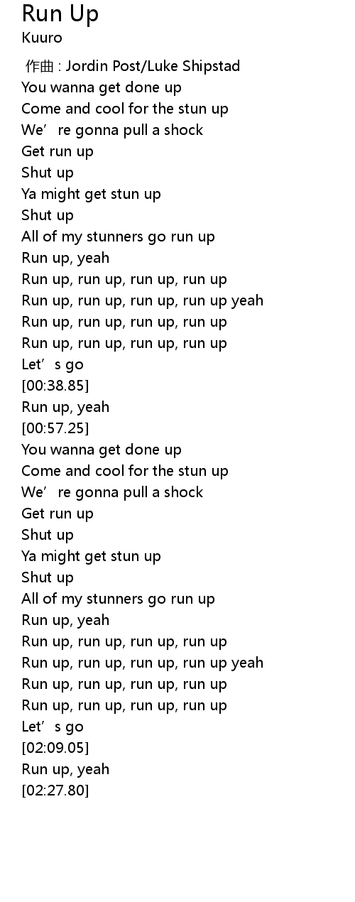 | [02:00.04] | Run up, run up, run up, run up |
