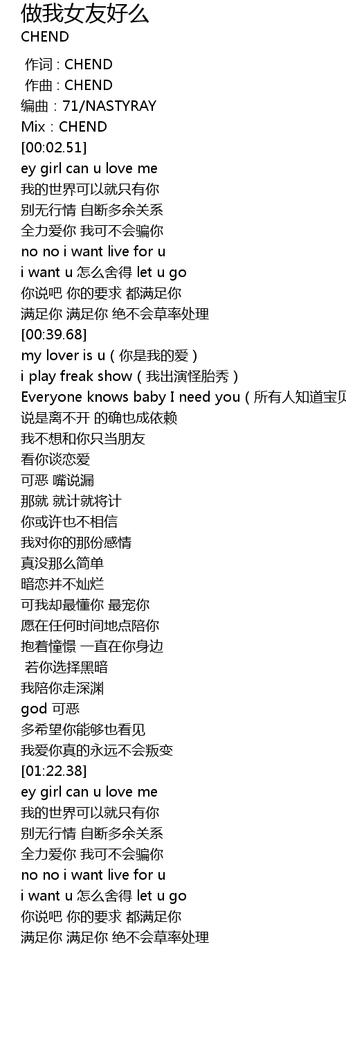 | [01:42.53] | 你说吧 你的要求 都满足你 |