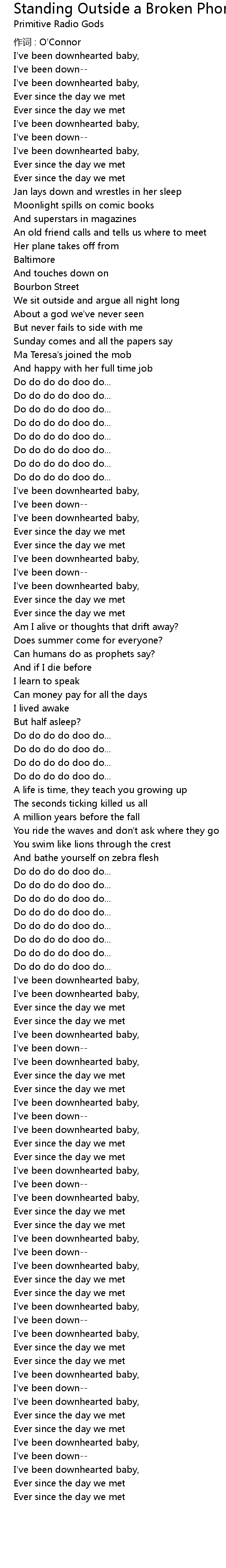 | Song | Standing Outside a Broken Phone Booth with Money in My Hand |