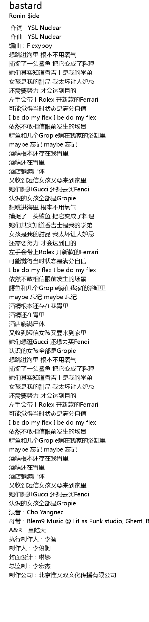 | [00:01.000] | 作曲 : YSL Nuclear |
