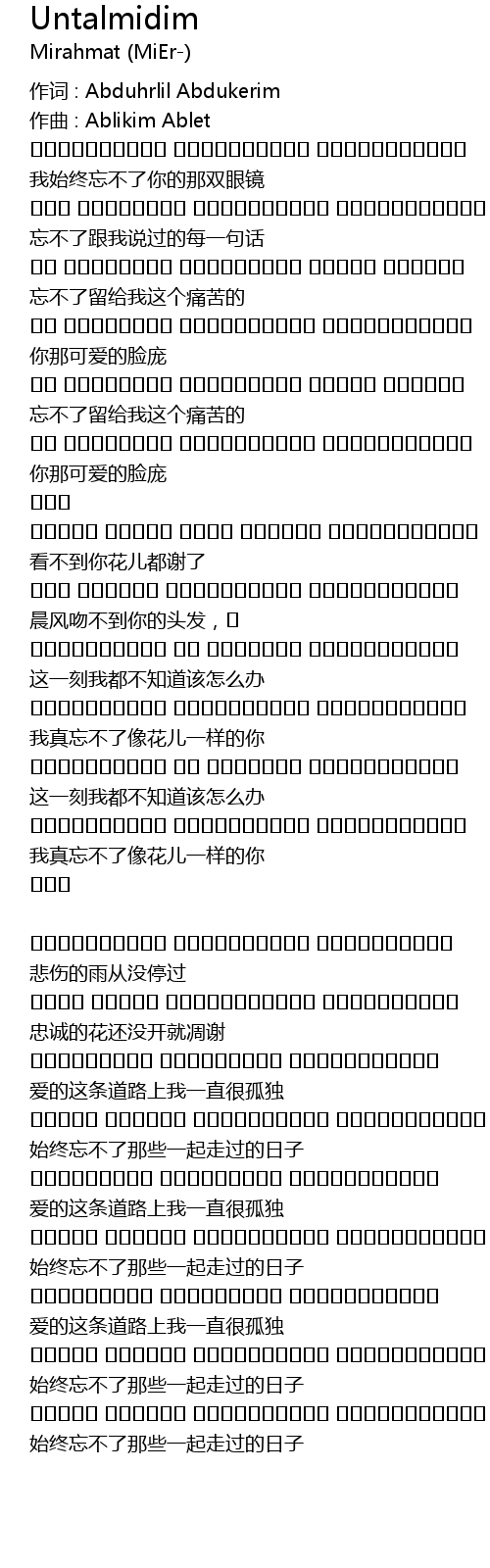 | ئىزىڭ قالغان يوللۇرۇڭنى ئۇنتالمىدىم | |