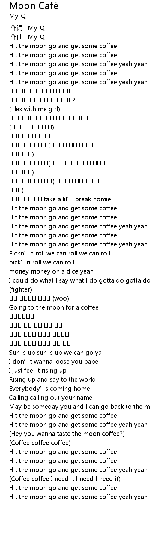 | [01:29.216] | Hit the moon go and get some coffee |