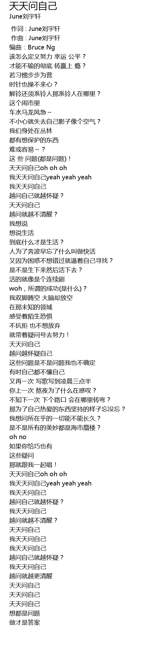 | [02:35.400] | 我天天问自己yeah yeah yeah |