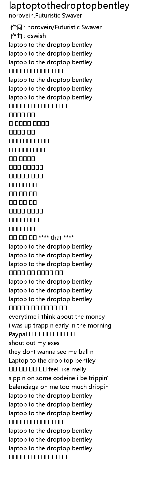 | [01:12.223] | laptop to the droptop bentley |