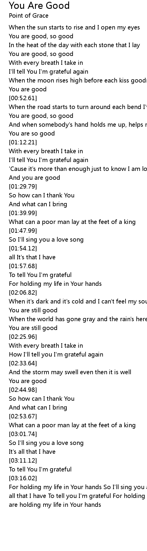 For holding my life in Your hands So I'll sing you a love song It's all that I have To tell you I'm grateful For holding my life in Your hands You are holding my life in Your hands |