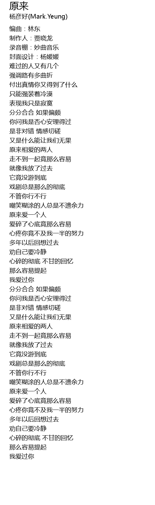| [03:06.525] | yuan lai xiang ai de liang ren |