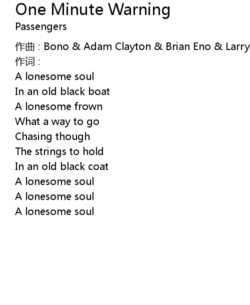 | 作曲 : Bono & Adam Clayton & Brian Eno & Larry Mullen & The Edge | |