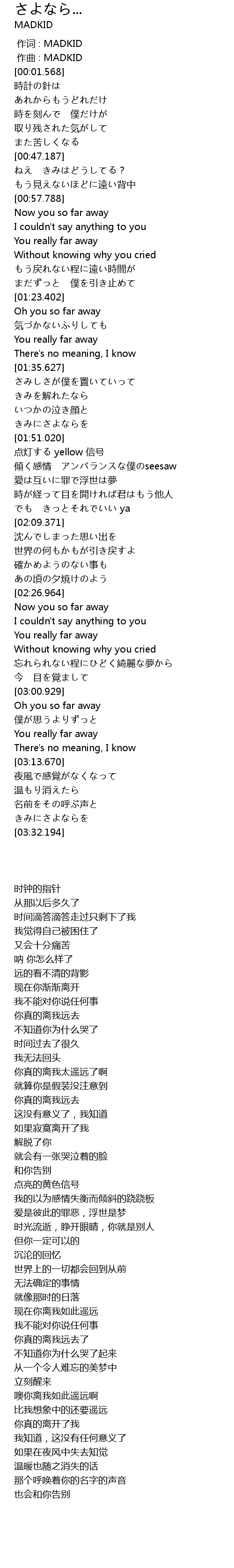 | [02:35.601] | Now you so far away |