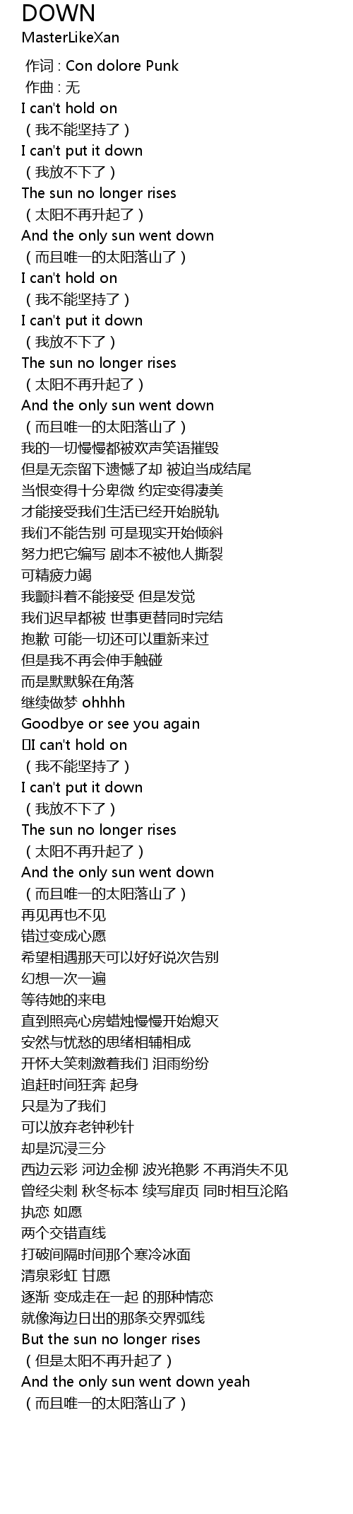 | [00:34.157] | tài yáng bù zài shēng qǐ le |