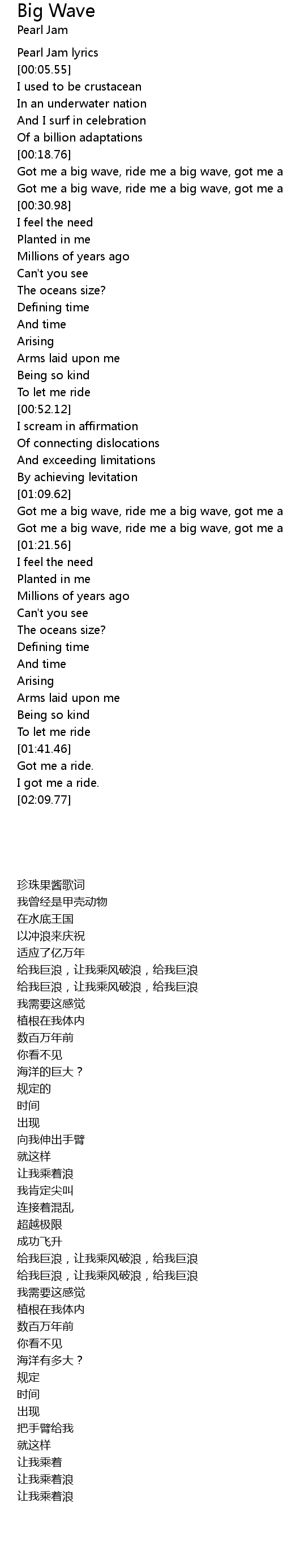 | [00:19.62] | Got me a big wave, ride me a big wave, got me a big wave. |