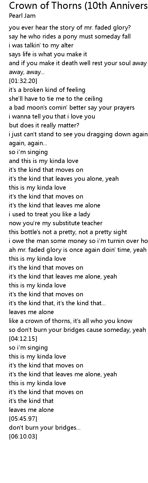 Crown of Thorns (10th Anniversary Show - MGM Grand - Las Vegas, NV 10/22/2000) Lyrics