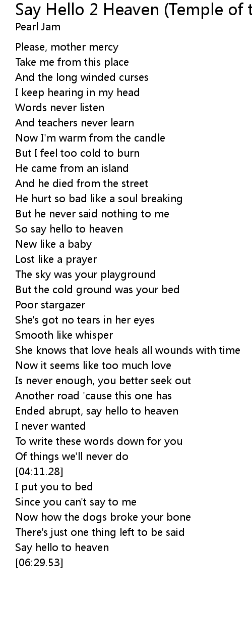 Say Hello 2 Heaven (Temple of the Dog demo 1990) Lyrics