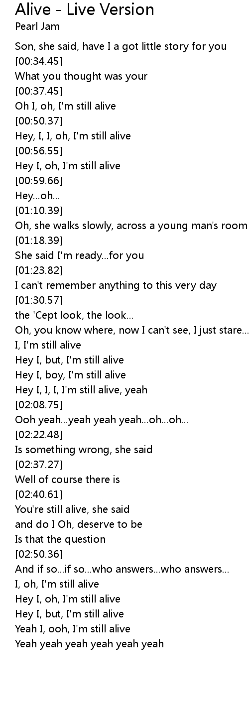 | [02:01.33] | Hey I, I, I, I'm still alive, yeah |