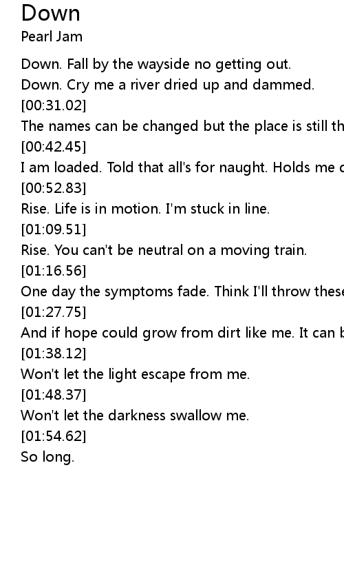 | [00:18.69] | Down. Fall by the wayside no getting out. |