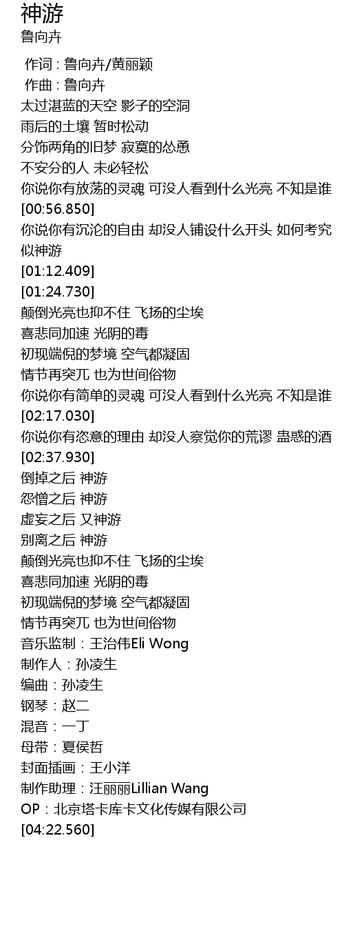 | [03:14.490] | bié lí zhī hòu shén yóu |