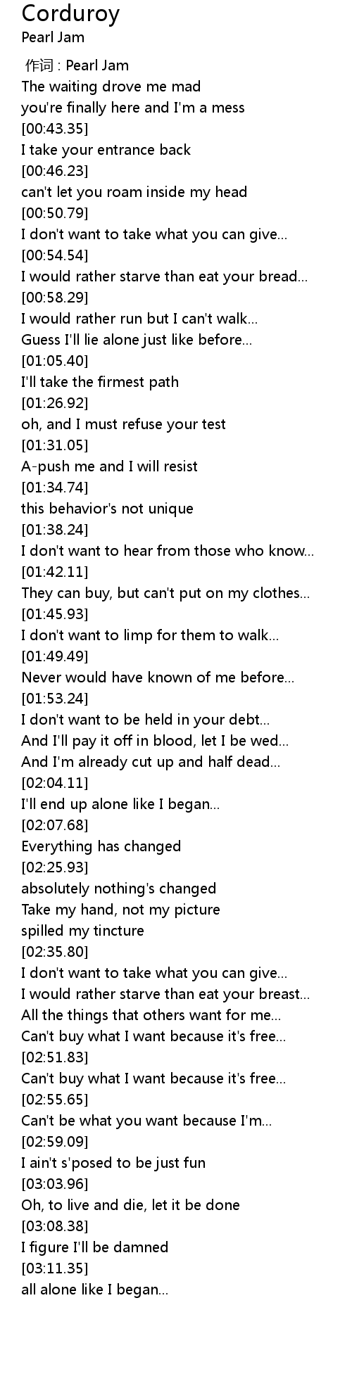 | [01:42.80] | They can buy, but can't put on my clothes... |