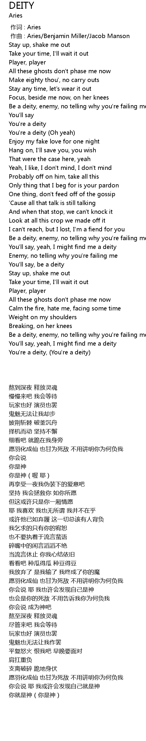 | [00:36.79] | You're a deity (Oh yeah) |