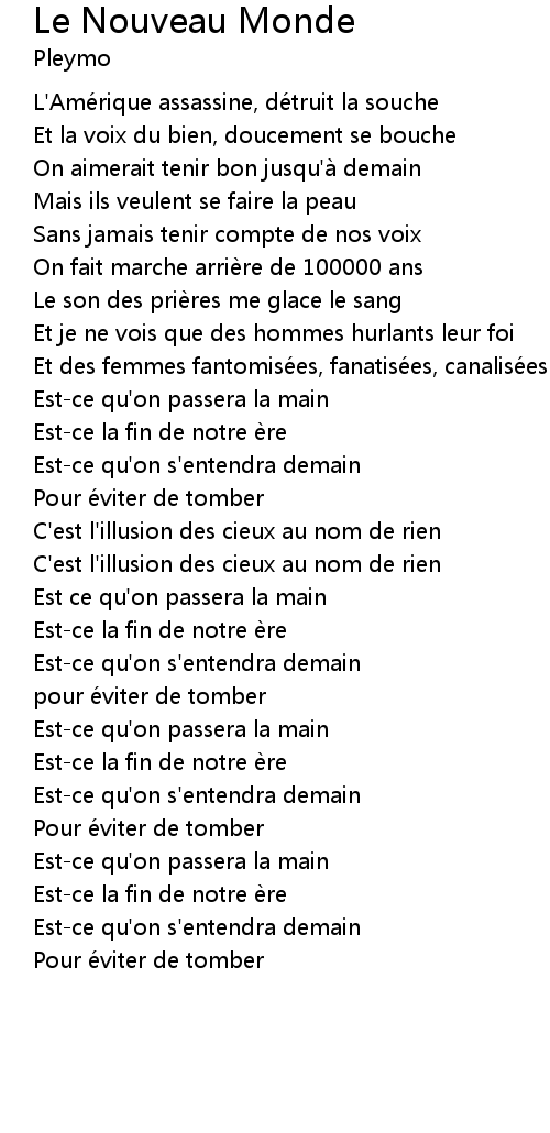 | Song | Le Nouveau Monde |