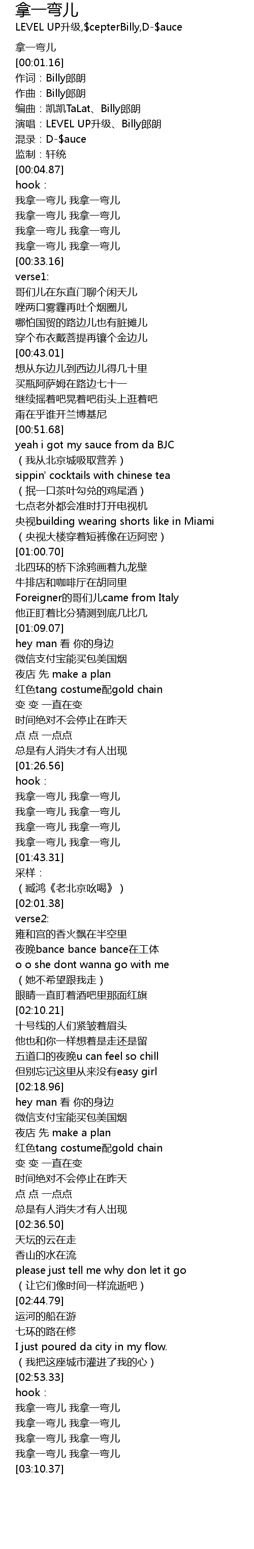 | [01:38.31] | 我拿一弯儿 我拿一弯儿 |