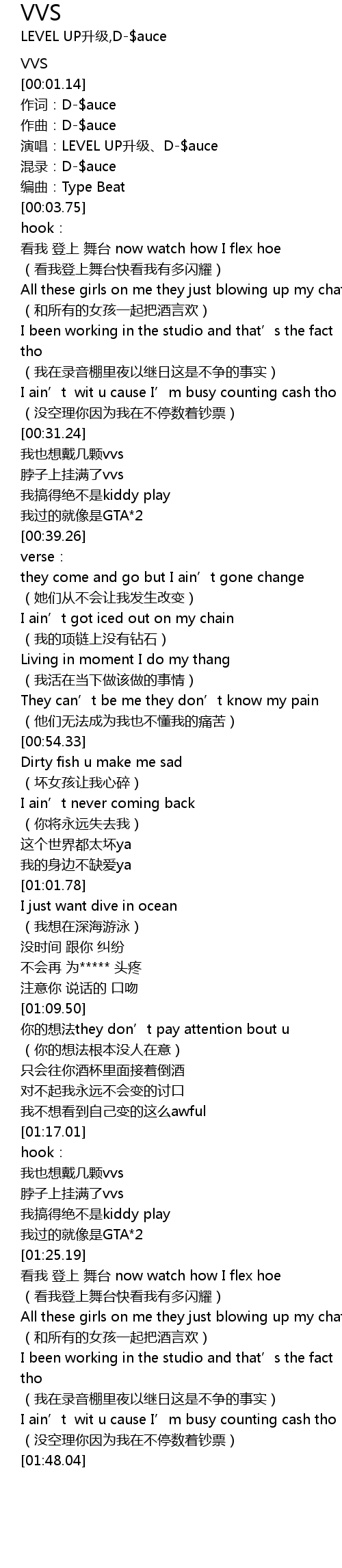 | [00:33.35] | bó zi shàng guà mǎn le vvs |