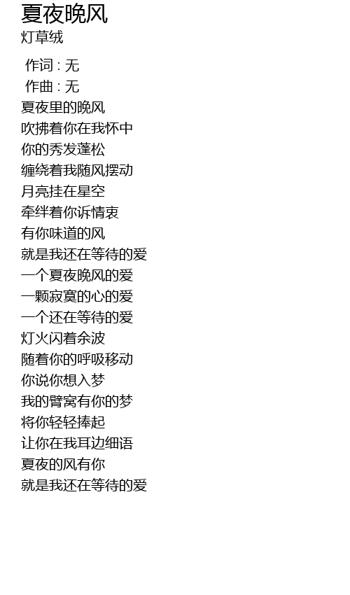 | [00:35.689] | 一个夏夜晚风的爱 |