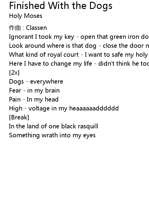 | Look around where is that dog close the door nothing than sorrow | |