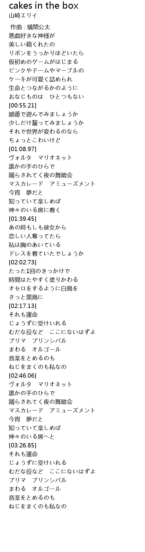 | [03:08.240] | 踊らされてく夜の舞踏会 |