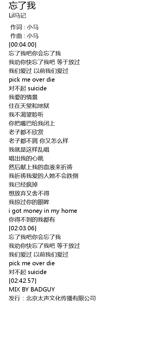 | [02:53.28] | 发行:北京太声文化传播有限公司 |