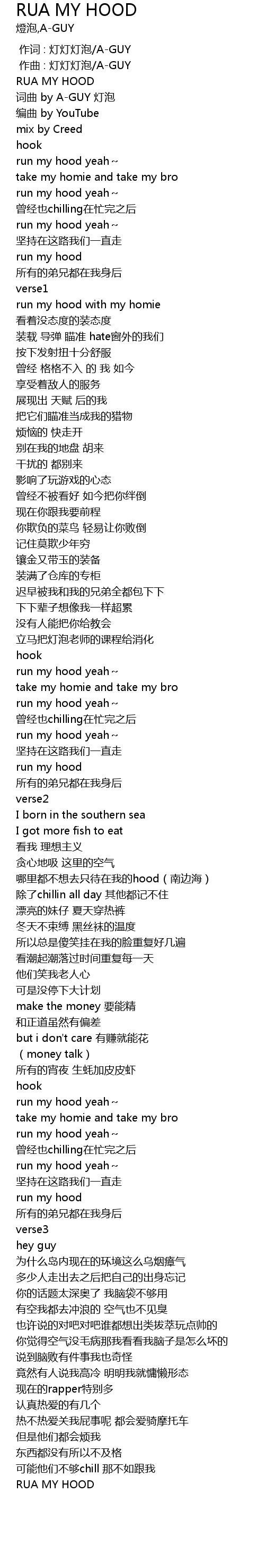 | [01:35.942] | 哪里都不想去只待在我的hood(南边海) |