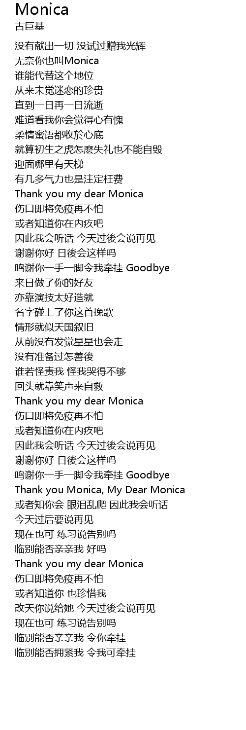 | [00:30.560] | wú nài nǐ yě jiào Monica |