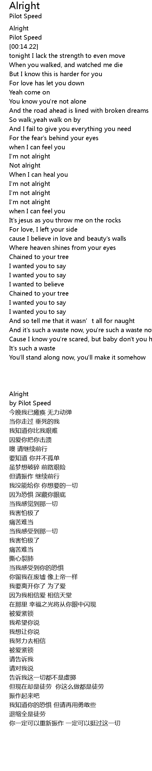 | [01:53.40] | I' m not alright |